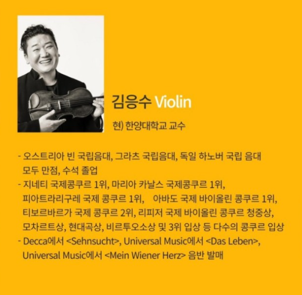 개막 연주로는 '김응수' 바이올리니스트 겸 한양대학교 교수와