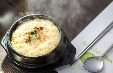 계란, 야채, 그리고 때때로 해산물이나 고기로 만든 고소한 한국의 계란 커스터드는 종종 반찬으로 제공된다