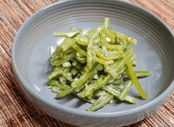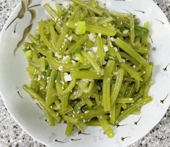 - 볶음 김치나 생 채소와 함께 고구마줄기를 무친다. 후춧가루나 참깨를 뿌려서 마무리하면 시원하고 매콤한 무침이 완성된다.