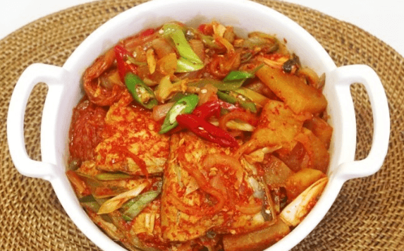 - 냄비에 김치 소스 만들기: 냄비에 김치, 고추장, 고춧가루, 마늘, 생강, 설탕, 소금을 넣고 섞어줍니다. 물을 넣고 중불에서 섞어 끓이다가 끓기 시작하면 낮은 불로 줄여 끓입니다.