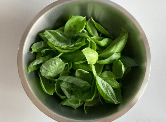 - 바질 준비: 신선한 바질 잎을 세척하고 물기를 제거합니다. 준비된 바질 잎을 건조기로 건조하거나 주방 타올로 가볍게 물기를 제거할 수 있습니다.