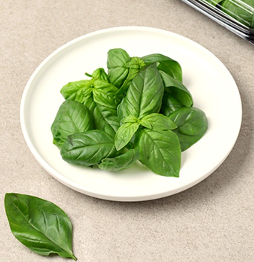 바질은 특유의 상큼하고 향긋한 향과 고소한 맛으로 유명한 허브로, 이탈리아 요리에 자주 사용됩니다. 풍부한 비타민 K, 비타민 A, 그리고 마그네슘이 풍부하여 건강에 좋으며, 식재료나 향신료로 활용되어 다양한 요리에 풍미를 더합니다. 특히 바질 페스토나 바질 파스타로 많이 즐겨집니다.