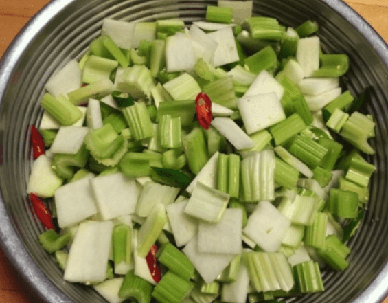 - 줄기 제거: 샐러리의 줄기를 손질해야 합니다. 신선한 샐러리를 골라 줄기의 끝 부분을 자르거나 끝을 잡아 당겨서 떼어낼 수 있습니다. 노란색이나 불필요한 부분도 함께 제거합니다.