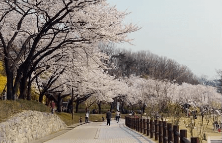 서울 올림픽 공원은 서울 동남부에 위치한 광대한 공원으로 서울에서 가장 인기 있는 벚꽃 명소 중 하나입니다. 공원에는 왕벚나무, 수양벚나무, 왕벚나무 등 1,000그루 이상의 벚나무가 있습니다.