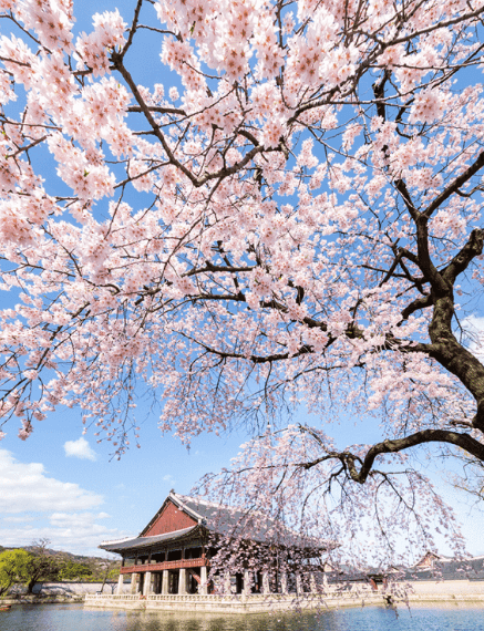 경복궁은 서울에서 가장 유명한 관광지 중 하나로, 봄철에는 벚꽃이 만개하여 더욱 아름다워집니다. 궁전 경내에는 300그루가 넘는 벚나무가 있어 이미 놀라운 역사적 아름다움을 더하고 있습니다.
