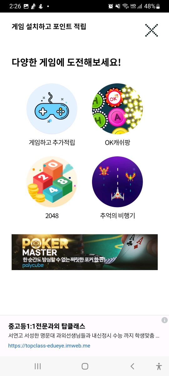 그렇더라고요 심심할 때 가끔 게임도 하고 포인트도 받고 하면 좋아요