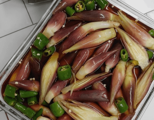 - 절임: 준비한 양하를 소금물에 절여 발효시킵니다. 이 과정에서 소금이 양하의 물기를 제거하고, 발효 과정을 촉진시킵니다. 절임 시간은 약 2~3일 정도 소요됩니다.