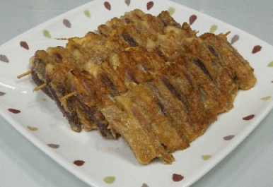 - 팬에 기름을 두르고 양념이 묻은 양하를 돌돌 말아가며 노릇하게 튀겨줍니다.