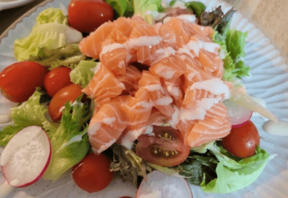 연어 샐러드는 신선하고 건강한 요리로, 다양한 영양소를 함께 즐길 수 있는 메뉴입니다.
