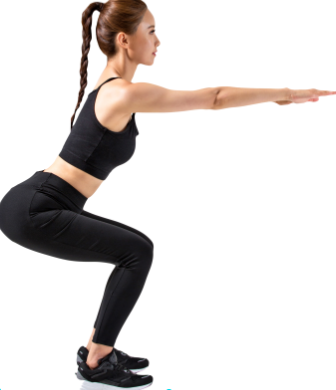 1분 동안 스쿼트 동작을 진행합니다