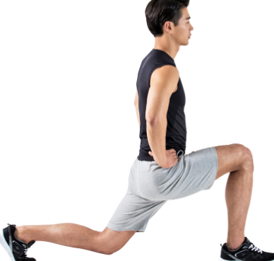 무릎을 구부리면서 런지 동작을 진행합니다