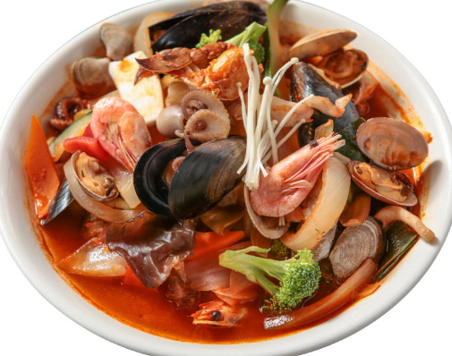 짬뽕은 다양한 해산물과 야채, 매운 육수로 만든 해물칼국수입니다.