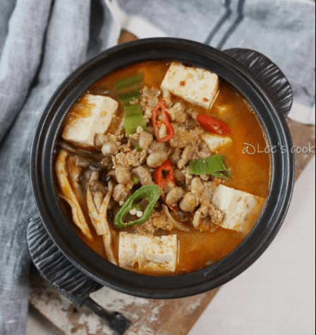 반죽이 완성되면 찌개, 국, 볶음 등 다양한 요리에 첨가할 수 있습니다. 청국장은 야채, 고기, 해산물의 조미료로도 사용할 수 있습니다.