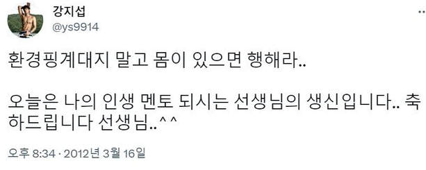 강지섭은 2012년 3월 16일 자신의 SNS에