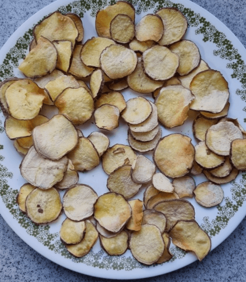이 조리법은 섬유질과 산화 방지제가 풍부하며 전통적인 감자 칩의 건강한 대안입니다. 또한 완전 채식주의 자이며 글루텐이 없습니다.