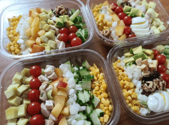 마지막으로 샐러드를 개인 도시락으로 나누어 먹을 준비가 될 때까지 냉장 보관합니다.